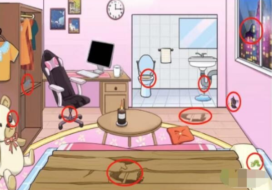 1、玩家先使用放大镜查看衣柜,然后会发现老鼠,之后床头的查看小熊眼睛,会发现摄像头;