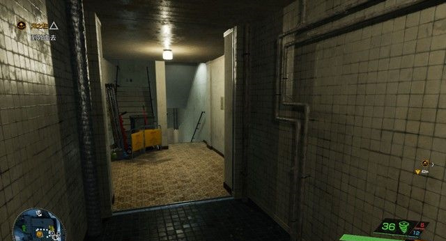 2、走到大楼,因为大楼的透视原因,可以查看绫子的动向,但是由于门被反锁了出不去。