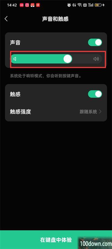 3.最后在设置声音和触感的页面中滑动下面的绿色横杆即可;