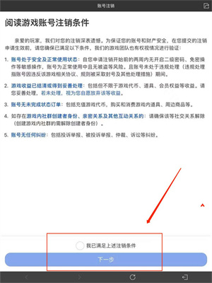 7、该账号在本游戏使用期间已产生及未来可能产生的所有收益或权益将会清除。据此,也特别提示您,在您注销本游戏账号前请确保已妥善处理您的游戏收益或权益。否则,账号注销后,我们有权对该账号下的全部收益或权益做清除处理,因此产生的后果由您自行承担。前述游戏收益或权益包括但不限于该账号内剩余的所有游戏虚拟货币、虚拟道具以及其他虚拟物品和增值服务。
