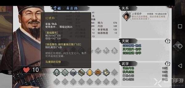 3)红琥珀:红琥珀则是在【杭州】的商会【马清扬】的身上,点击观察,查看所拥有物品,找到红琥珀,切磋、乞讨、决斗获得;