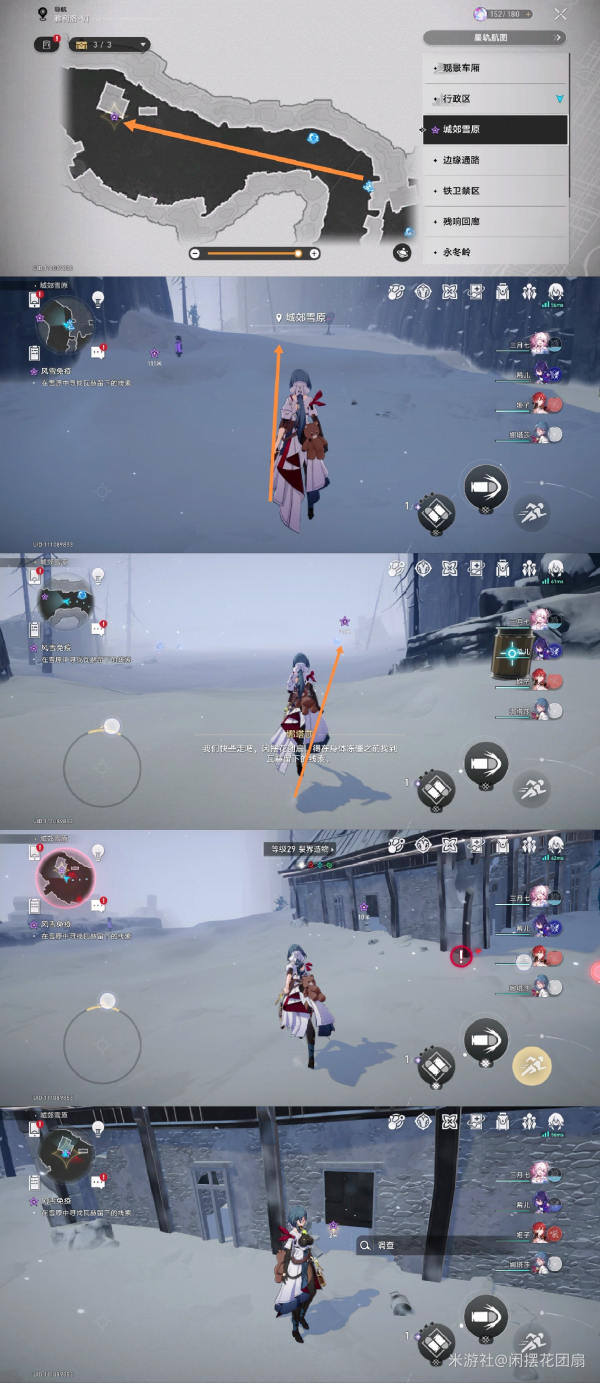 6、从城郊雪原的长坡传送,跟着箭头方向走,调查发光点;