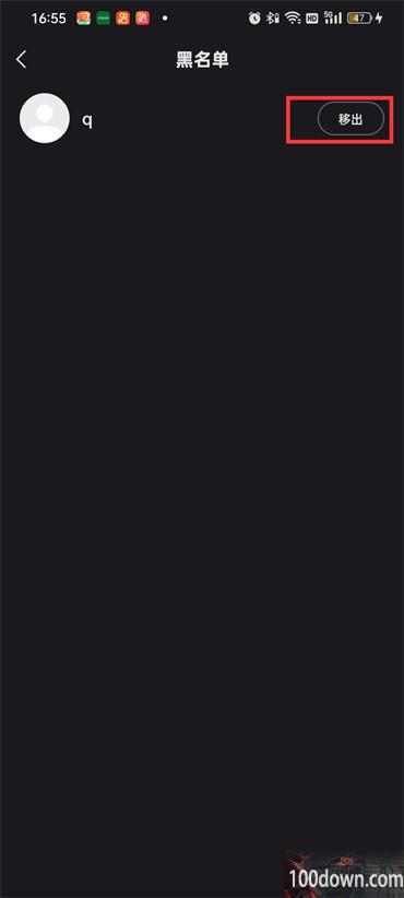 5.最后在黑名单的页面中点击【移出】即可;