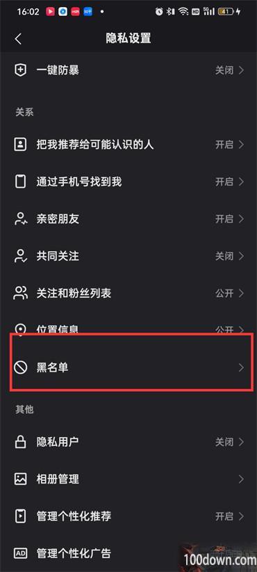 4.进入到隐私设置的页面中往上滑动找到【黑名单】点击;