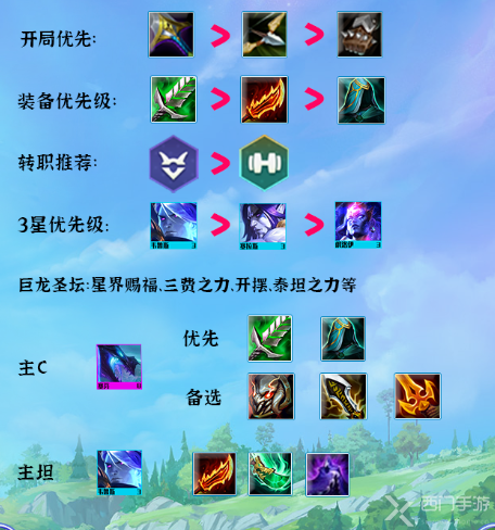 主C塞芬的装备优先给汲取剑,泰坦能够加坦度和攻击,水银能够保证塞芬稳定输出,无尽之刃能够补充塞芬的伤害,因此只要保证有一把汲取剑,其他装备随便搭配即可。
