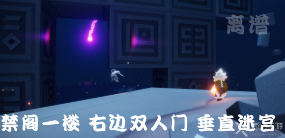 玩家在禁阁入口,右侧台子隐藏图,垂直迷宫的位置就可以看到有紫色光芒了。