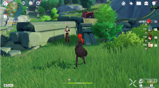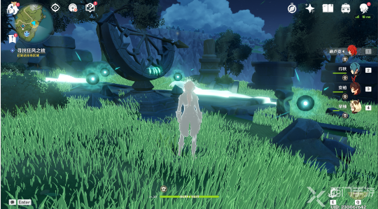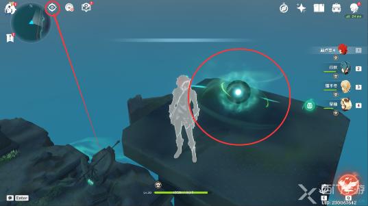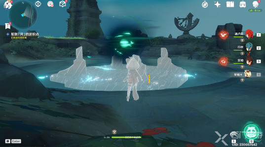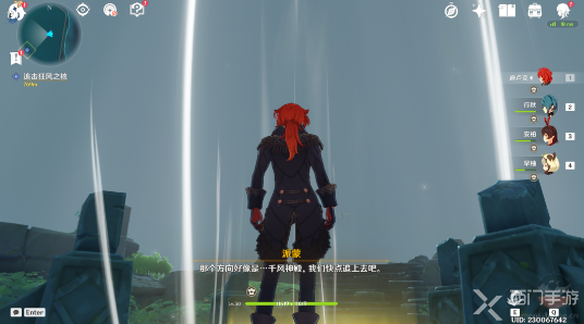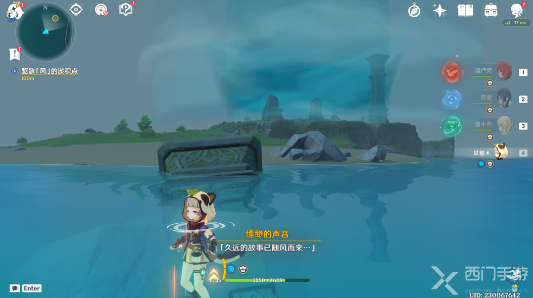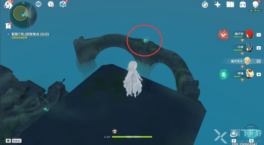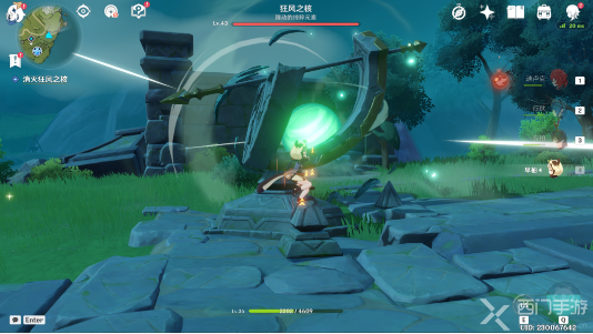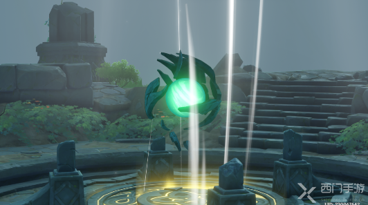 6、然后需要我们在日显右侧的石柱上,使用[元素视野]可以看到[风元素聚集点],使用风元素的攻击可以驱散它;