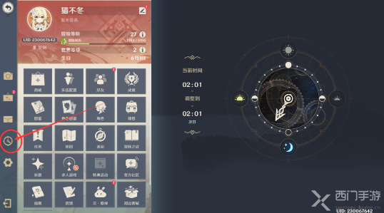 5、需要在游戏内时间的凌晨2点-5点才能进行后续解密任务——打开操作界面,调整时间至凌晨2点;