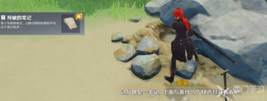 3、在击碎石碓后,可以在此处找到【残破的笔记】;