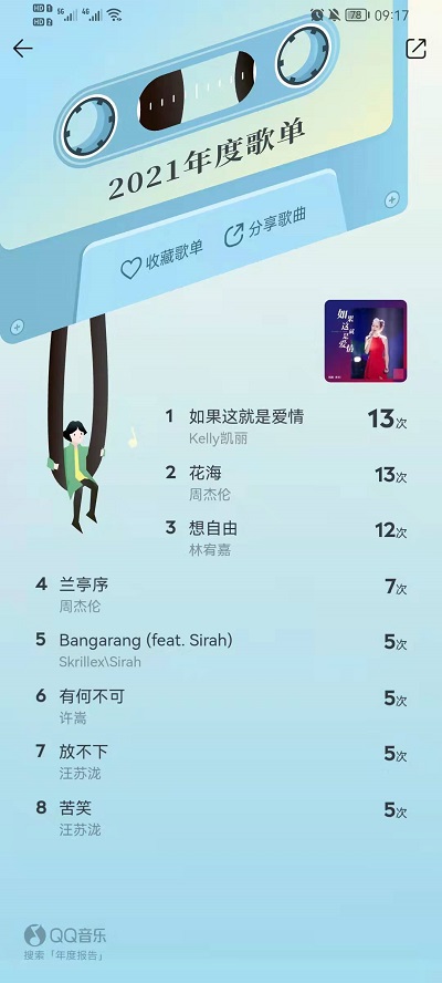 4、还会把我们一年中听过的最多的歌曲组合成一个排行榜,让我们了解自己听了什么歌最多,帮助我们回忆;