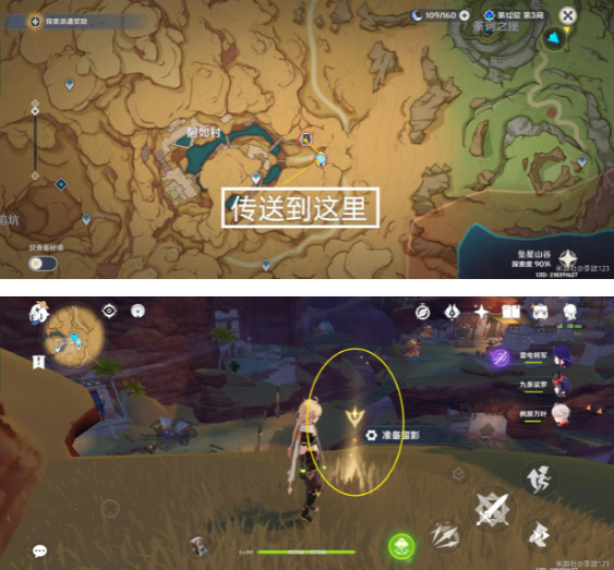拍照位置:如图所示,前往【阿如村七天神像】的传送点。