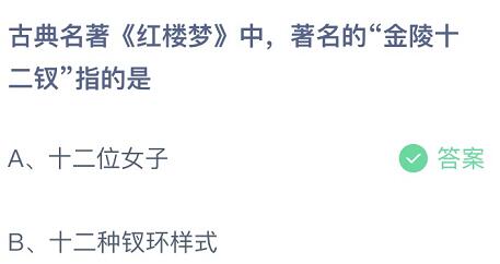 古典名著红楼梦中,著名的金陵十二钗指的是-蚂蚁庄园11月8日答案