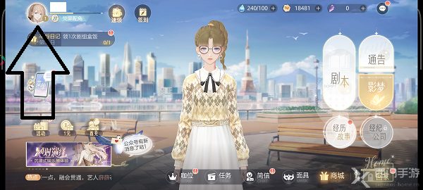 1、首先进入绝对演绎手游,进入游戏后点击游戏界面上的头像选项;