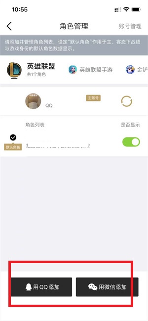 3、在角色管理的界面玩家们就可以选择QQ/微信号添加自己需要绑定的角色了。