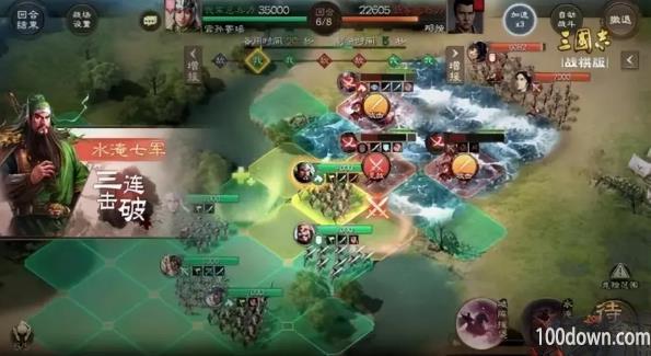 战局中采用的是战棋模式,并不是传统意义上回合制与自由对战,每一名出战武将都相当于是棋子,战场被分割成了一块块棋盘。需要先移动棋子到可以攻击位置才能输出。这就需要考虑各自攻击距离和战法伤害距离等。因为很多战法都是范围伤害或者是指定几格距离以内,如果移动不到位就相当于输出失败,或者是效果极差。