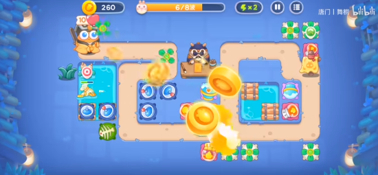 4、后期清完道具,可以多补一些炮塔,看着放就行,有钱升满级即可差不多过关。