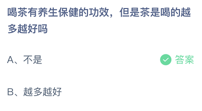 喝茶有养生保健的功效,但是茶是喝的越多越好吗-蚂蚁庄园3月26日答案