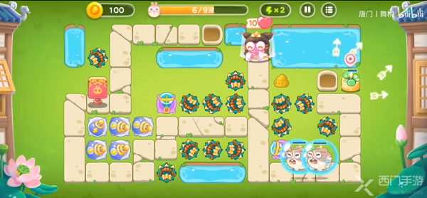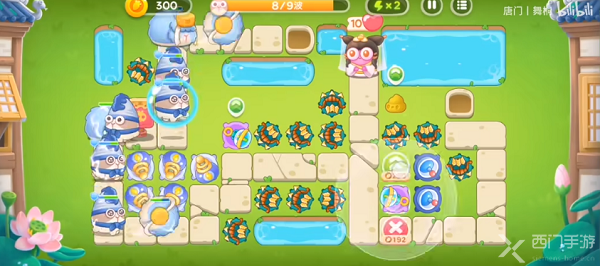 4、后期在拐角处多放几个泡泡塔,有很多滑轮兔走的很快,有钱之后可以多放一些炮塔,把钱都花完。