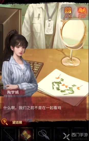 30、然后又将两张图卡放在桌上,点击钟医生完成罗夏测试,第一次可以随意答;