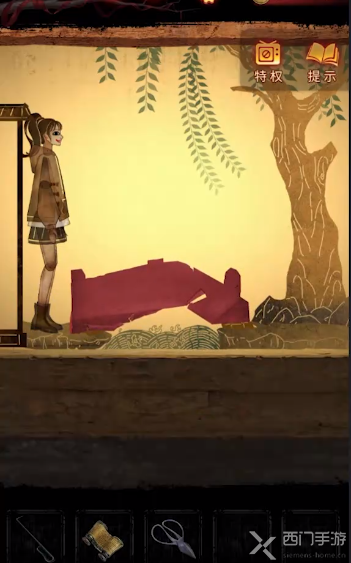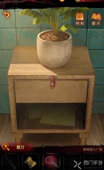 28、剧情后,点击右侧的小柜子,用剪刀剪开绳子得到第一张图卡;