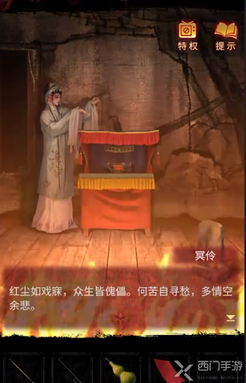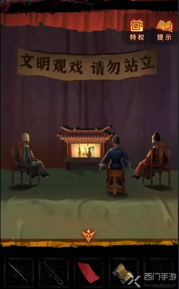 33、完成后可以得到锤子,用锤子砸开门锁,出门后会有问答,答案:幻术影响-益昌镇的木偶戏院-真人屠,最后进入剧情完成第四章。