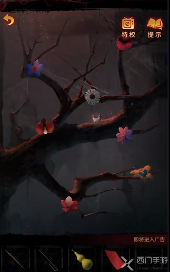 15、然后回到地面将纸钱放入火盆中燃烧,树上会出现几朵花得到线索;