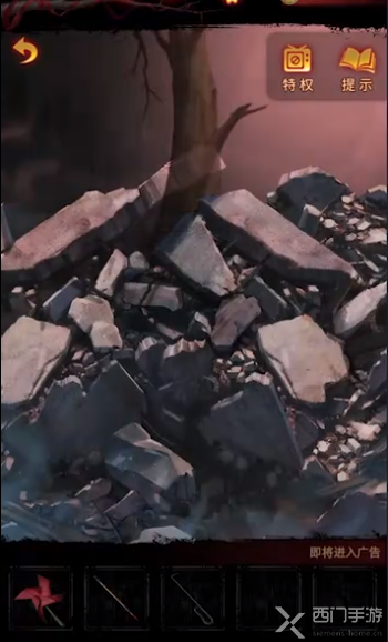 12、从房间出来将种子扔进碎石堆后,将纸灰撒上去出现一棵大树;