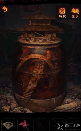 10、从房间出来,两饰品放在右下角的红色瓶子上,需要完成小游戏(可以直接跳过)得到刀币;
