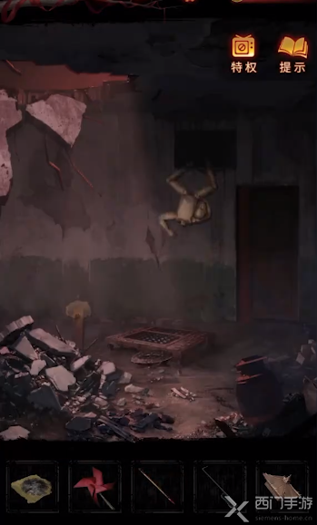 9、右侧挂着的木偶会消失,有一个墙洞,在墙洞处拾取房顶饰品;