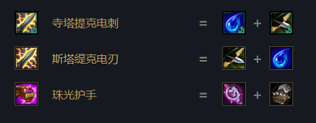斯塔缇克电刃:携带者的每第3次普通攻击会释放一道链状闪电,可弹射4名敌人,造成70魔法伤害并使目标的魔法抗性降低70%,持续5秒。