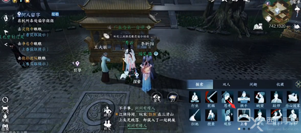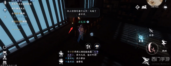 七:书生就是奎辛世,玩家先与其对话,然后前往前方的牌坊处使用望气调查即可。