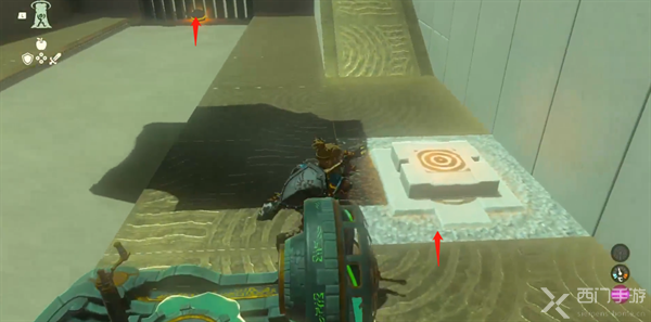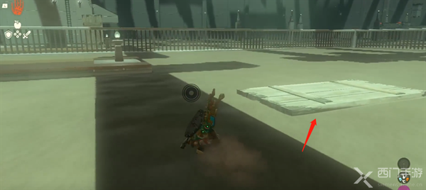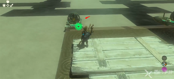 1、进入神庙会看到沙地在移动,玩家进入会大量流失体力,玩家借助沙子上的木板前进。