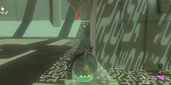 4、来到箭头所指的位置,使用通天之力就可穿越上去。
