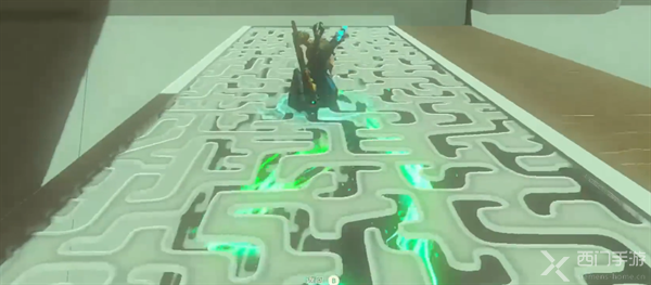 7、玩家从一旁登上平台,将小球放在坑中,即可解锁过关的大门。