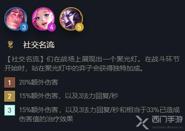社交名流们会在战场上展现一个聚光灯,战斗环节中站在聚光灯中的弈子会获得独特加成。其中包含了额外伤害、法力回复、额外治疗效果等。