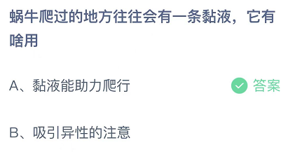 蜗牛爬过的地方往往会有一条黏液,它有啥用-蚂蚁庄园10月23日答案