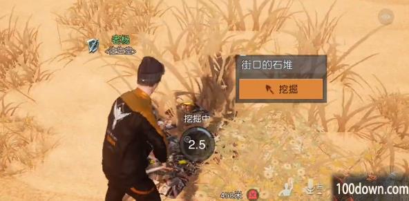2、在这里会有一个石堆,玩家靠近会有挖掘的交互键,点击挖掘就可以获取宝藏了。