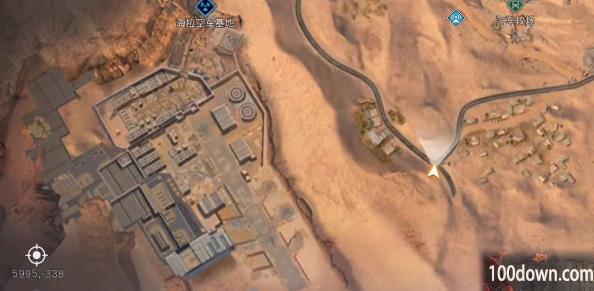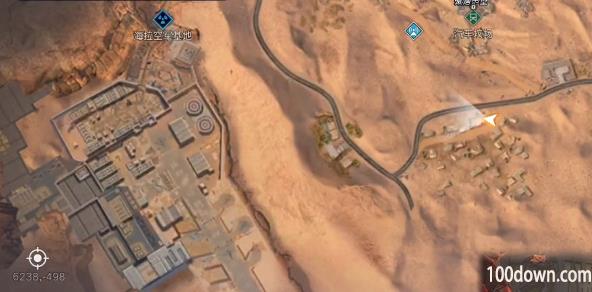 1、进入游戏之后,打开地图前往金色沙漠的【汽车坟场】左下方位置,如下图: