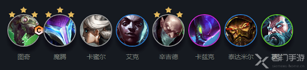 1.阵容成员:图奇+魔腾+卡密尔+艾克+辛吉德+卡兹克+泰达米尔+基兰
