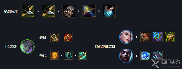 解析:前期优先老鼠无尽分裂,好打连胜,后面连胜上去没啥东西选秀就拿护甲腰带,护甲可以合冰心法医给魔腾,腰带可以合伏击基克给艾克。肉装给青钢影,输出装溢出就给螳螂,螳螂可以副C,弥补老鼠后期乏力。肉装很关键,青钢影死慢点老鼠就可以多输出一会。