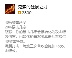 克格莫暴力输出流:狂风之力、2无尽、羊刀、多米尼克领主的致意、攻速鞋;