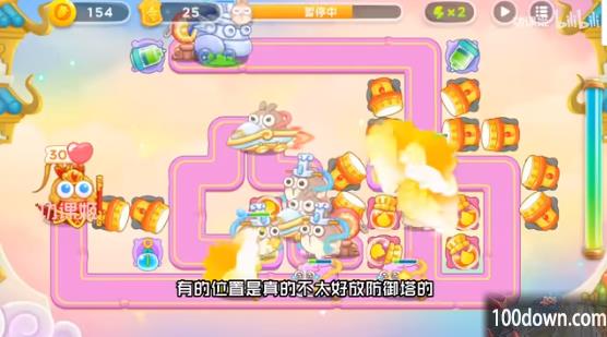 1、开局在下方起点右侧放喷火瓶,先把左侧道具打掉,然后放喷火器往右侧清理,粉兔来到时候要锁一下;