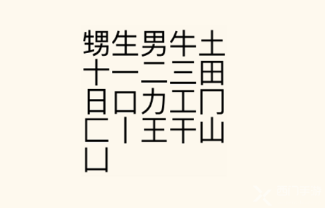 甥、生、男、一、二、三、十、一、田、土、牛、日、口、力......(具体参考下图)