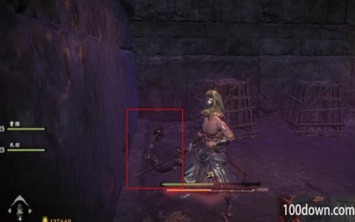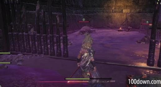 1、首先玩家先来到最底层位置,在角落里找到一个被紫色水覆盖的地牢房间;