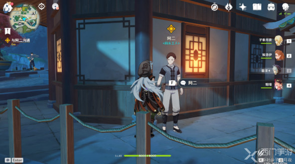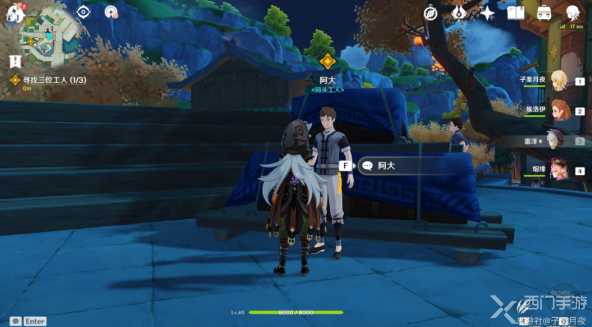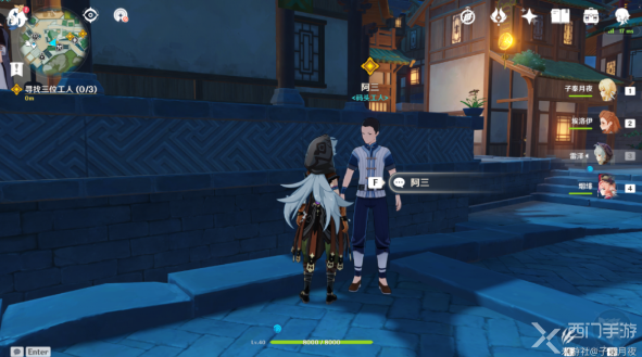 3、跟着任务追踪指引找到阿三与之对话,请他帮工,他倒是只接冒险,不接文书(对话中可以讨价还价,出价在1w左右);