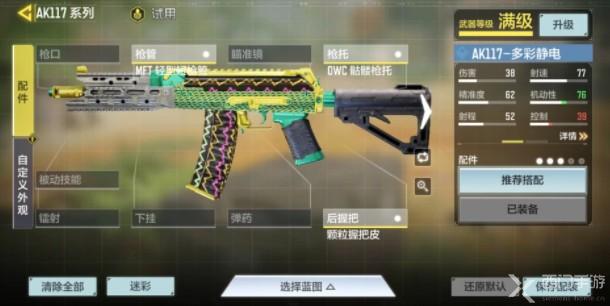 4.其中AK117也有一款多彩静电皮肤,主要是黄色和绿色为主色调,外加电流状的粉色波浪纹;