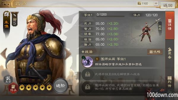 文韬武略:对范围内敌军群体造成44%~88%兵刃伤害及44%~88%谋略伤害。