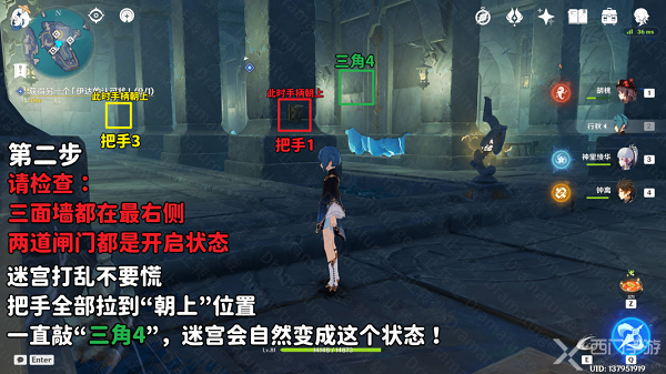 7、如果玩家的迷宫之前有动过的话,那么将把手1和把手3全部朝上,之后不断敲打三角4也可以将迷宫转换成该状态;