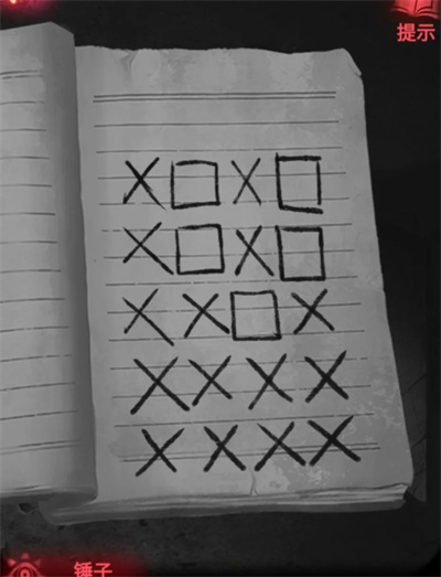 2.点击柜子得到小面具,使用锤子打开箱子得到宝石,用铜尺将木偶线割断,得到钉子,将钉子钉入墙壁,用锤子加固,得到墨水和提示,如图3-4;