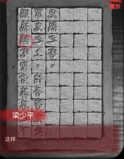 1.完成游戏得到无面磁人,对着砖头使用铜尺,得到锤子,用锤子将雕像砸了,得到宝石,对着铁塔使用无面磁人,完成拼图,使用锤子,得到提示,如图一,再根据图二,得到按石块的顺序;